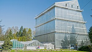 The construction of the Botanical Garden greenhouses began in 1928. The first set of buildings included a palm house, a succulent house, and a separate section for orchids and tropical water plants (a tropical house). During the World War II, German army units were deployed at the Botanical Garden and only three gardeners could continue their work. Part of the collection was destroyed. Arboretum trees were used to heat the greenhouses to preserve collections of tropical and subtropical plants. In 1953, the post-war period, the Palm House was enlarged, but in 1972 it was built entirely anew, with a floor space of 550 m2 and 24 m in height.