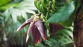 One of the most characteristic plants of the African tropics is the coffee tree and the African Kigelia or sausage tree. However, the Asian tropical flora is represented by the pointed banana and the Tiger grass - a plant that is widely grown in tropics as an ornamental and creates the effect of bamboo which it resembles.